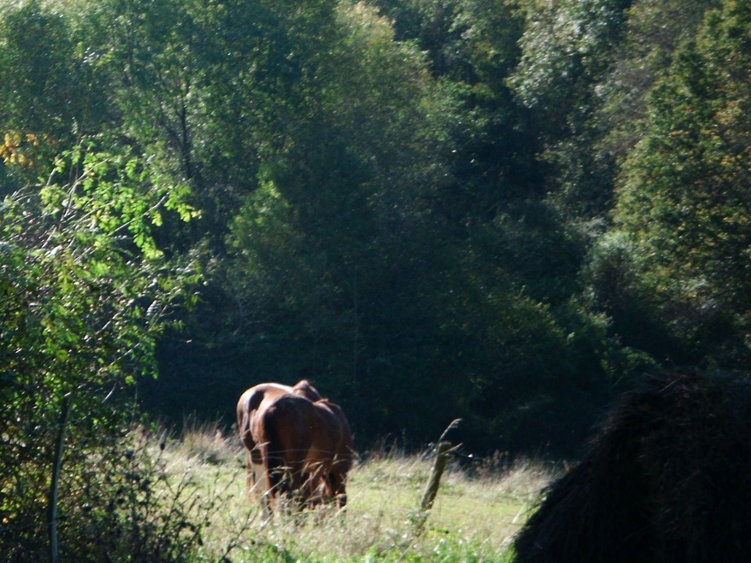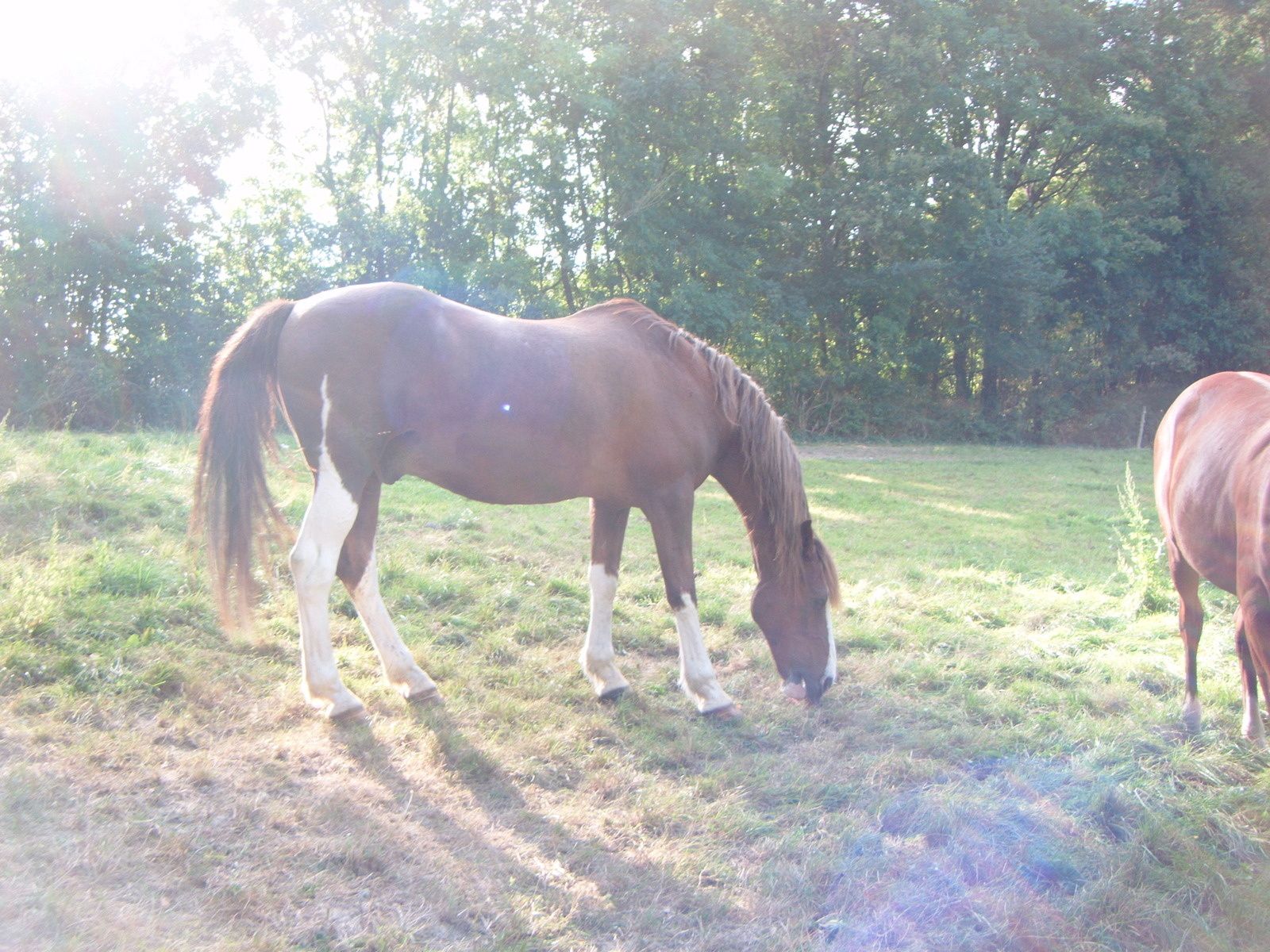 quand le soleil réapparait tout à coup et nous chauffe de ses rayons... et s'il pouvait assécher aussi un peu la "zone de roulement" d'Eros qu'il a bien piétinée et où il ne reste plus un brin d'herbe, ça m'arrangerait! parce que le bain de boue quotidien.....