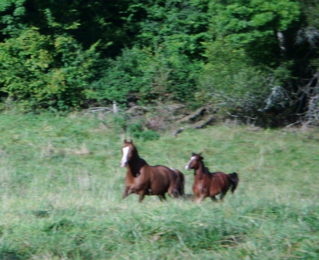 dans la série photos équestres en retard de la fin de l'été... le duo poulinou - Eros, en version Eros dans la roue! Alignement parfait! Le Eros toujours observateur... tentative pour doubler? Même pas, juste observer l'autre côté!